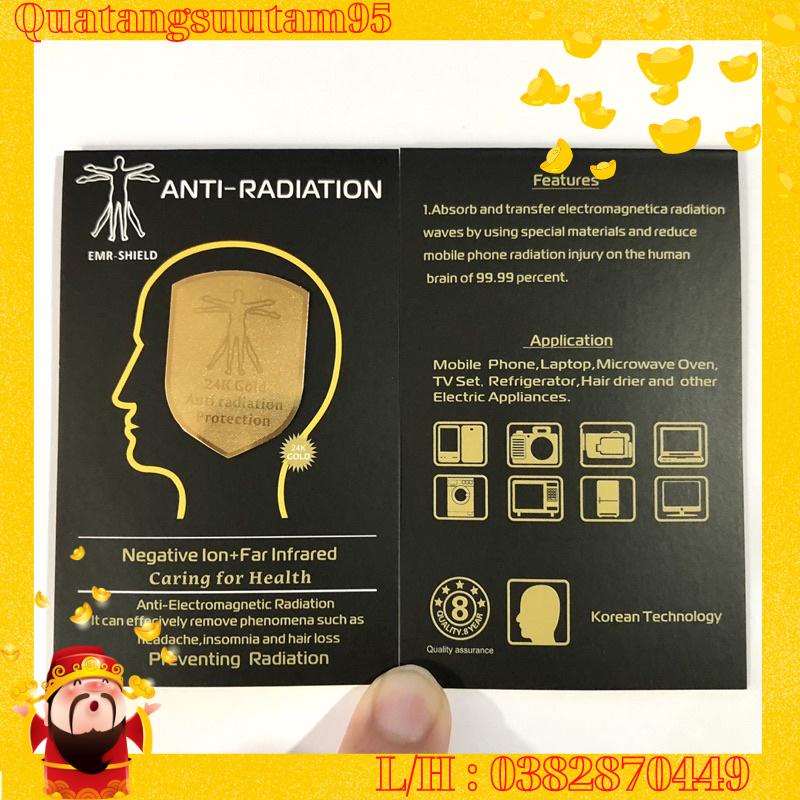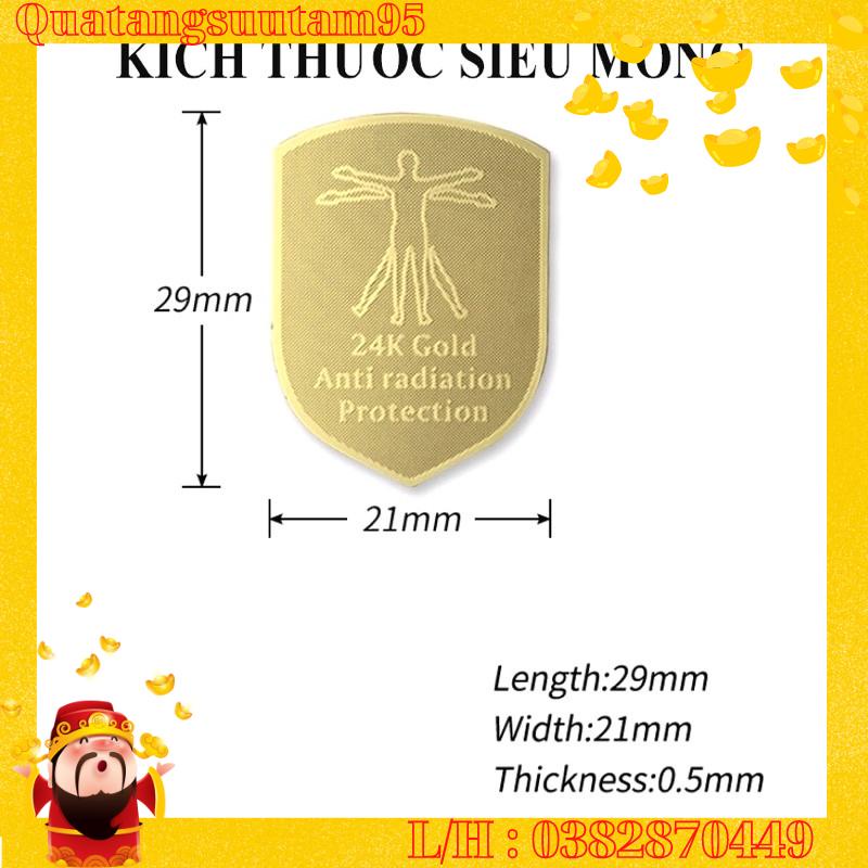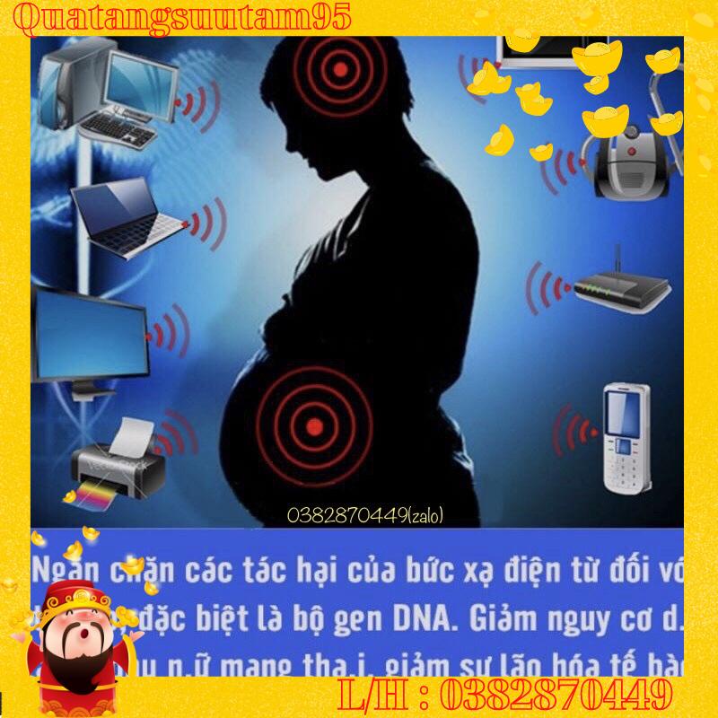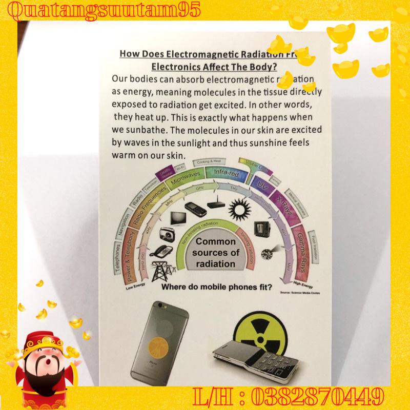 Sản phẩm miếng chip dán ngăn cản bức xạ điện từ, triệt sóng có hại cho cơ thể. Hạn chế các tác động tiêu cực do sử dụng các thiết bị điện tử trong thời gian dài.Miếng dán mạ vàng 24K siêu đẹp, siêu bền mua 1 lần dùng cả đời.
