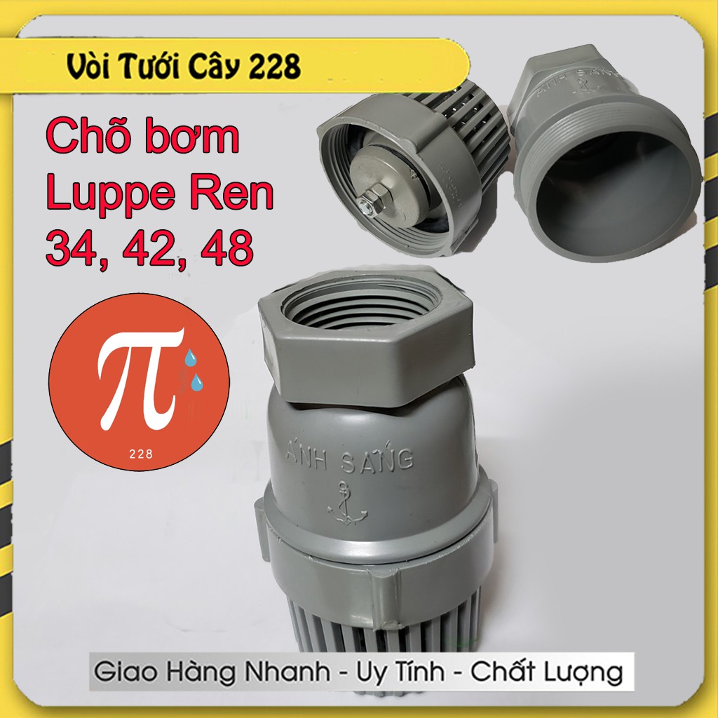 Chõ bơm, lúp bê, luppe răng ren trong 34, 42, 48 có van 1 chiều lò xo giữ nước,, chặn rác
