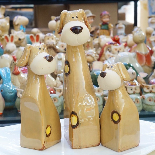 #chó #chócon #cún #cúncon #trangtrínhàcửa #gomsubattrang #gomsu #decorBộ chó gầy set 3 sứ Bát Tràng