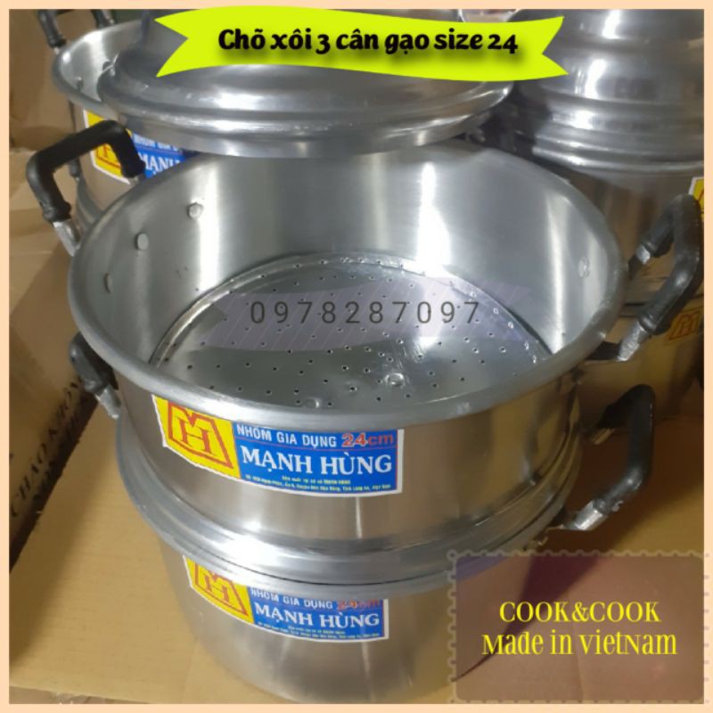 Giới thiệu Chõ hấp xôi, chõ đồ xôi size 24 nhôm Mạnh Hùng đồ 2, 3 cân gạo