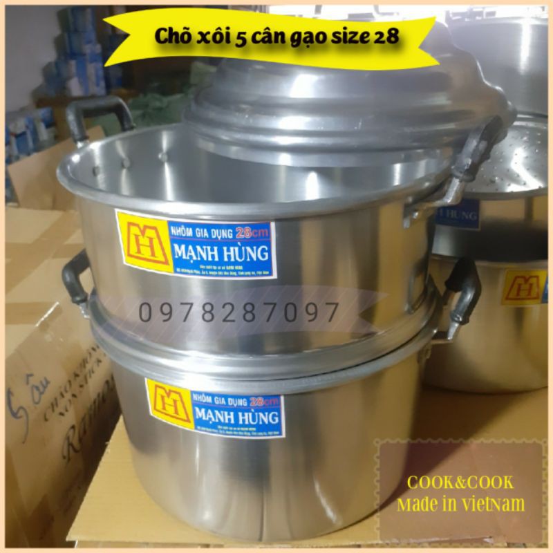 Chõ hấp xôi, chõ đồ xôi size 28 nhôm Mạnh Hùng đồ 4, 5 cân gạo