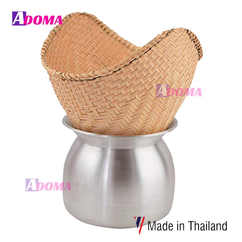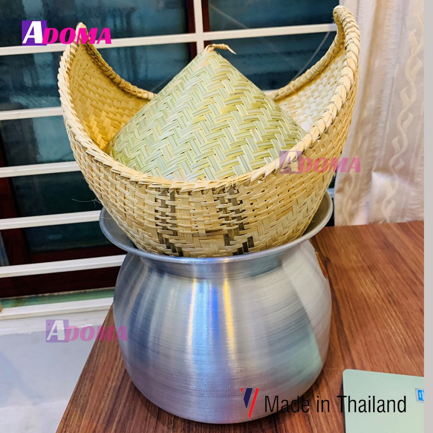 Chõ nấu xôi loại 1 + nồi đồ xôi kiểu Thái/Lào (bộ vỉ tre kèm nắp) tiện dụng หม้อนึงข้าวเหนียว
