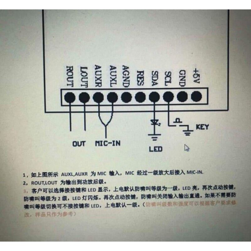 chú ý điện áp cấp cho mạch là 5v các bạn dùng ic 7805 để hạ áp cấp cho mạch.Mạch sử dụng công nghệ dịch tần để tránh những tần số gây nhiễu nên không bị méo tiếng không bị cắt giảm tần số nên không ảnh hưởng tới chất lượng âm thanh khi hát
