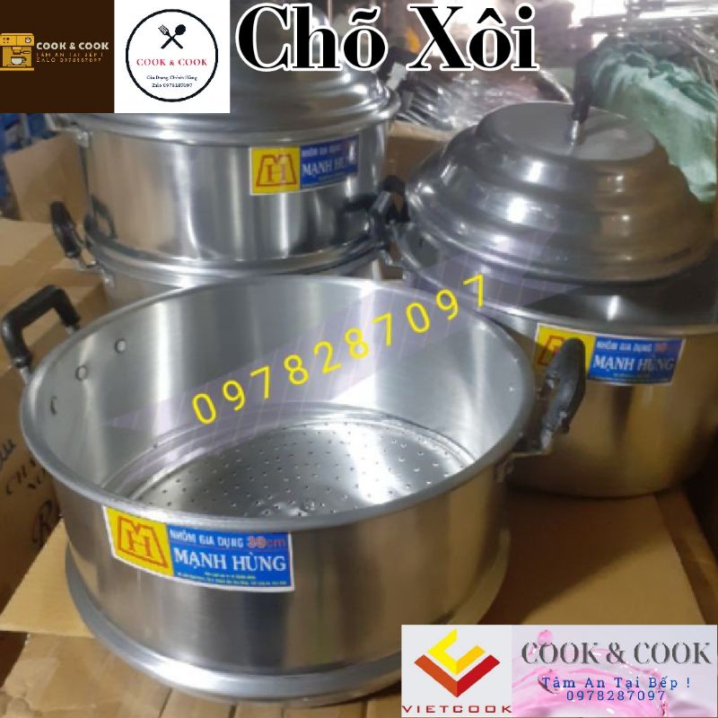 Chõ xửng hấp xôi, chõ đồ xôi 5, 10, 15, 20, 25 cân gạo nhôm Mạnh Hùng đủ size 20, 22, 24, 26, 28, 30, 32, 36, 40, 42 cm