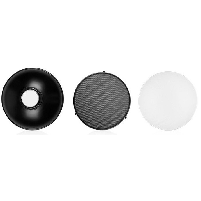 Chóa đèn tổ ong Beauty Dish 55cm Godox là một phụ kiện không thể thiếu trong các phòng studio hiện nay, chóa có lưới tổ ong tạo ánh sáng đi theo ánh sáng vòng, định vị ánh sáng ánh sáng theo hướng thẳng. chuyên dùng chụp ảnh chân dung, ảnh cưới, chụp mặt, chụp sản phẩm…với ưu điểm là không bị bóng, ánh sáng mịn, làm nổi bật chủ đề.THÔNG SỐ KỸ THUẬT: