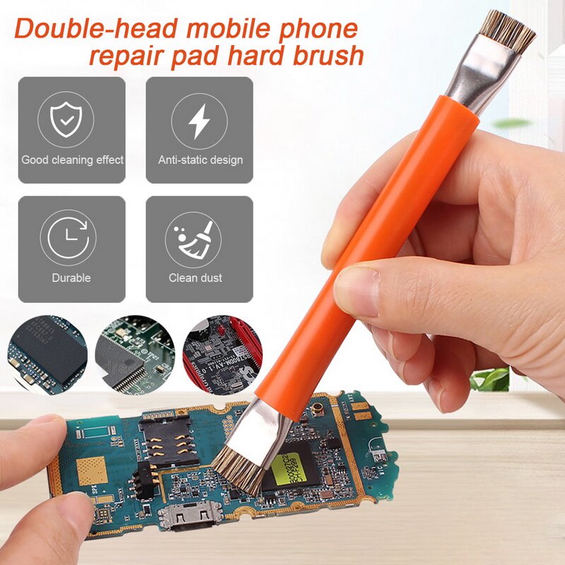 Chổi cọ 2 đầu vệ sinh main, vệ sinh IC - thân bọc nhôm.Sử dụng vệ sinh mỡ hàn, nhựa thông trên main điện thoại, mạch điện tử (dùng nước rửa main)