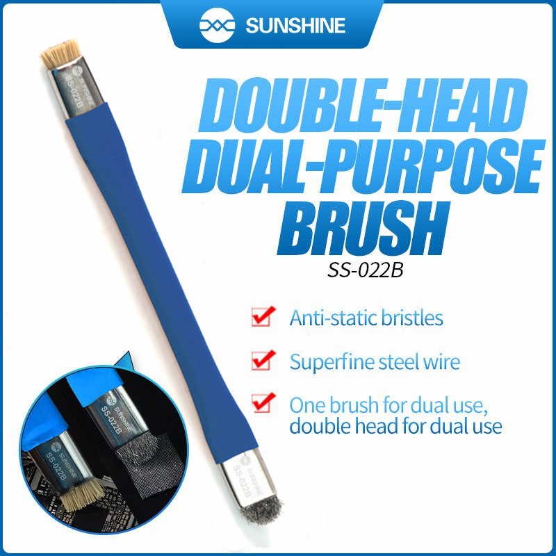 Chổi 2 đầu SS-022B thân bọc nhôm1 đầu chổi sợi lông để vệ sinh mỡ hàn, nhựa thông khi sửa chữa hoặc các main bị oxy hóa do ẩm mốc, bị dính nước lâu ngày