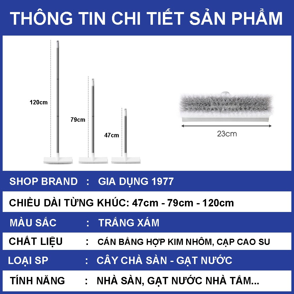 Gia Dụng 1977 cam kết với khách hàng về sản phẩm Chổi chà sàn gạt nước thông minh 2 IN 1 cán dài tùy chỉnh kích thước tiện lợi: