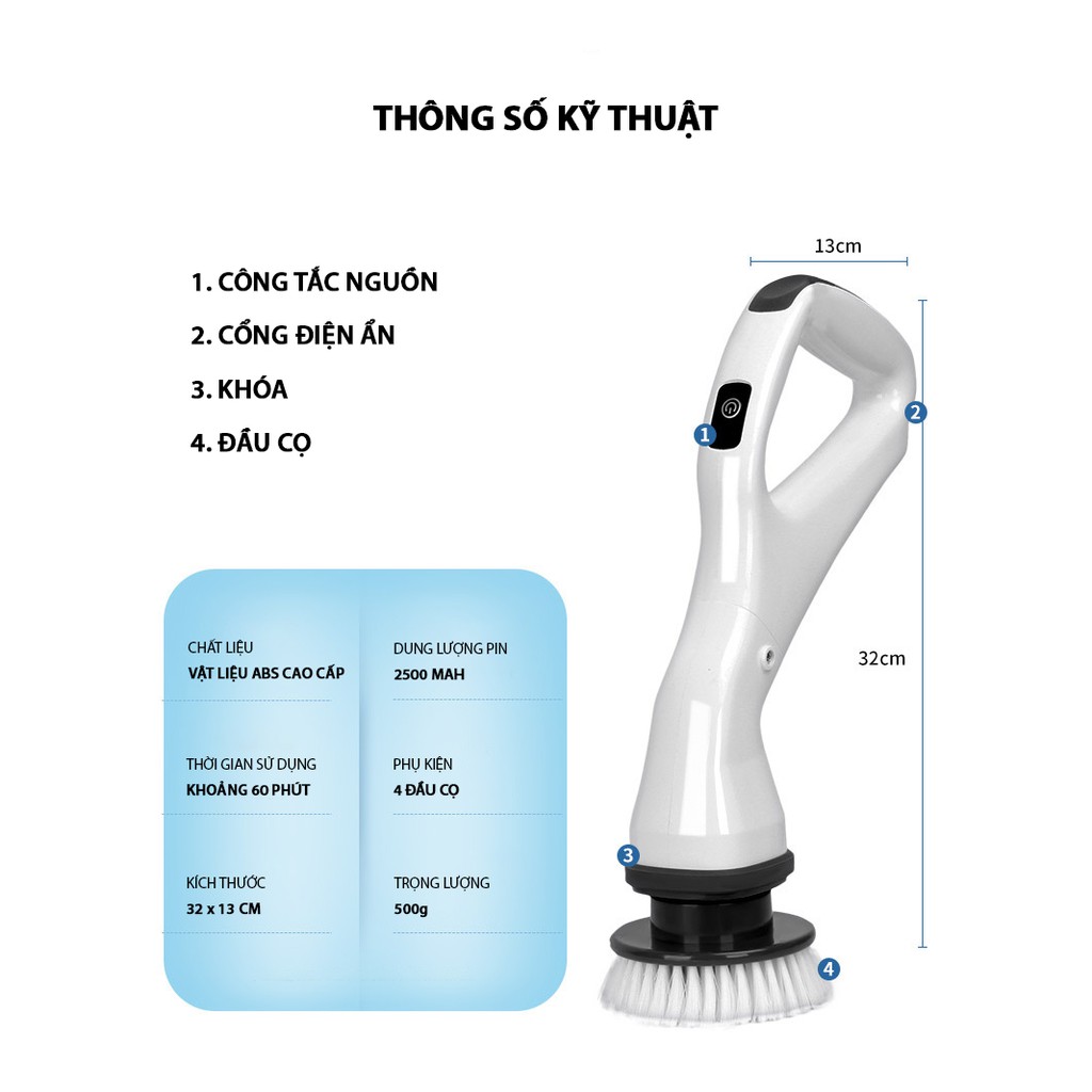 - Bàn chải cọ sàn tự động- Làm sạch xoay vòng giúp tiết kiệm thời gian và công sức