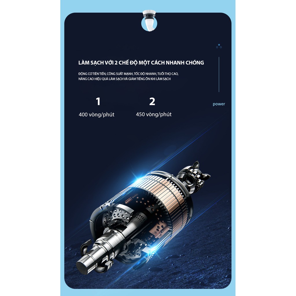 - Động cơ tiên tiến, công suất mạnh, tốc độ nhanh, tuổi thọ cao, nâng cao hiệu quả làm sạch và giảm tiếng ồn khi làm sạch