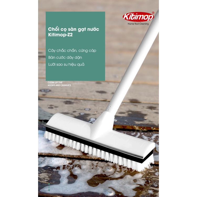 - Chổi cọ sàn gạt nước Kitimop-Z2 gồm: 1 bàn cọ 2 trong 1 (mặt cọ cước - mặt cao su) + 1 cán chổi hợp kim nhôm
