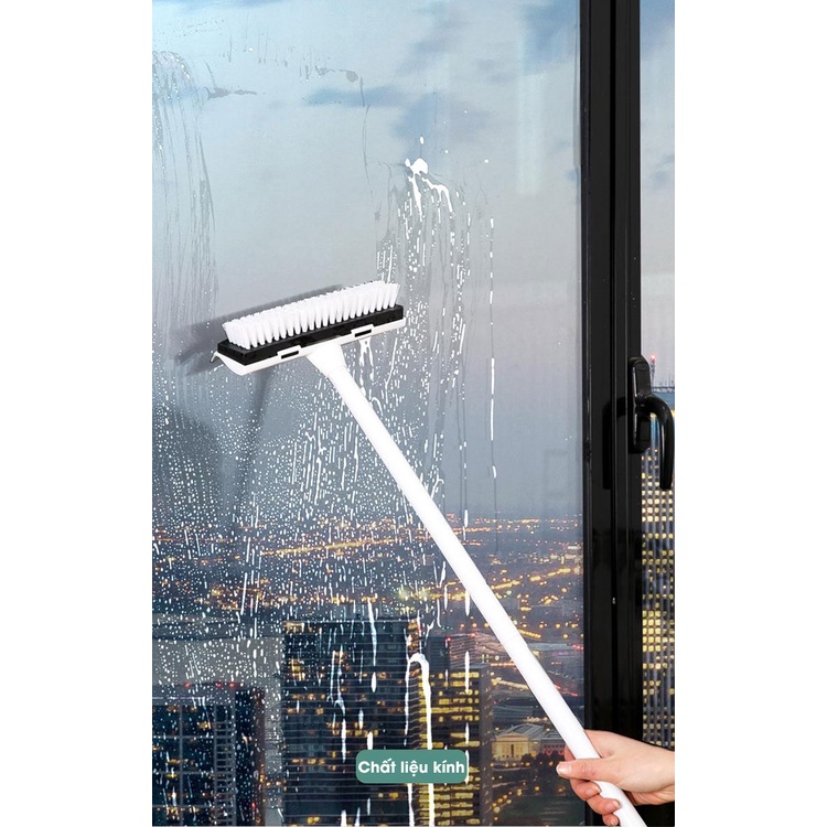 Cây cọ nhà vệ sinh Kitimop-Z2 bàn chải chà sàn và gạt nước đa năng, cán inox bền bỉ chắc chắn dễ dàng điều chỉnh độ dài