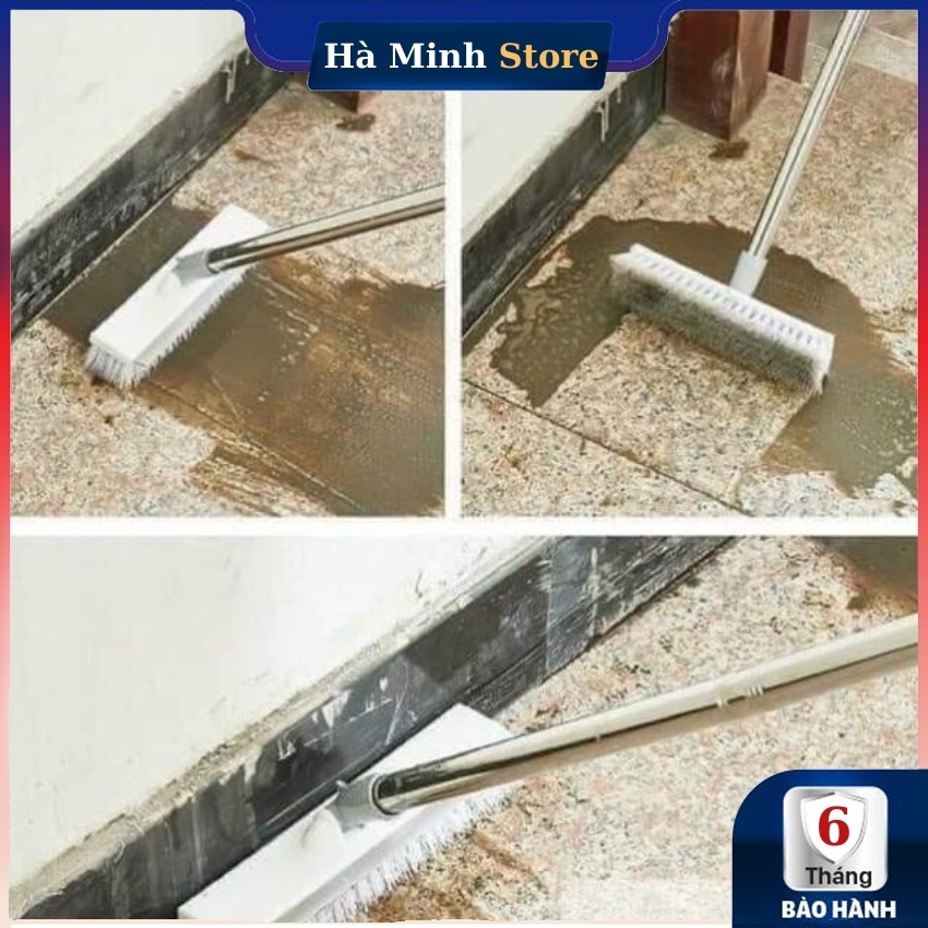 - Bước 3: Dùng chổi chà bề mặt sàn và quét nước, có thể điều chỉnh chiều dài cán chổi theo ý muốn