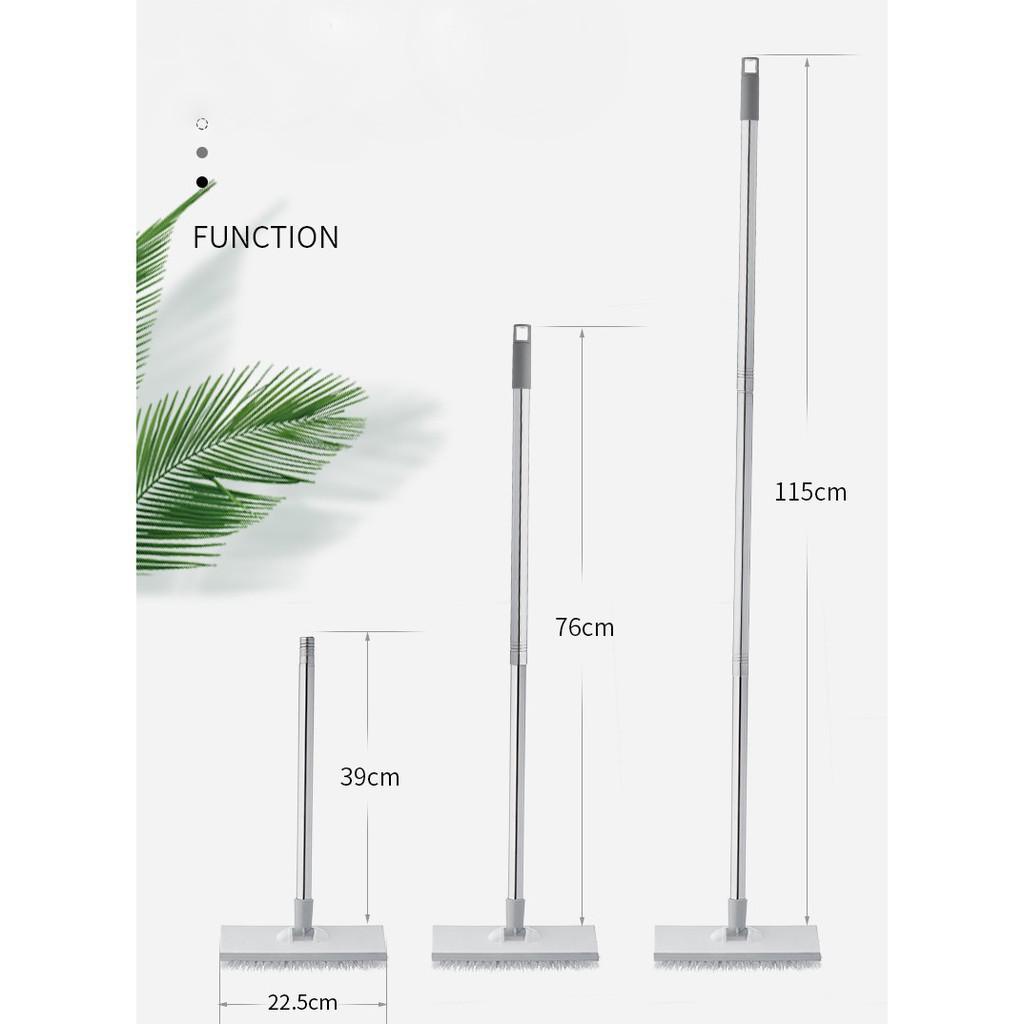 Sử dụng hai mặt : Đầu chổi với thiết kế gọn một mặt quét dễ dàng điều chỉnh loại bỏ vết bẩn trên sàn nhà vệ sinh và các cạnh góc chết , một mặt cạo và làm sạch.