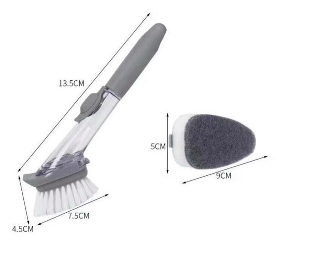 ➡ Sử dụng dễ dàng: tháo miếng cọ, đổ nước rửa vào phần chứa ở tay cầm, lắp lại & không lo hết nước rửa.