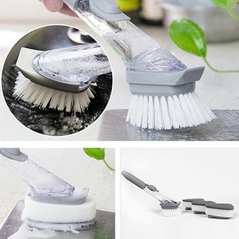 ➡ Sử dụng dễ dàng: tháo miếng cọ, đổ nước rửa vào phần chứa ở tay cầm, lắp lại & không lo hết nước rửa.