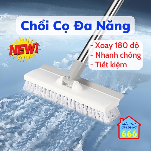 Chổi cọ đa năng 💥SALE💥 Cây chà sàn gạt kính nhà tắm, nhà vệ sinh thông minh cán dài 2 in 1 xoay 180 độ tiện lợi