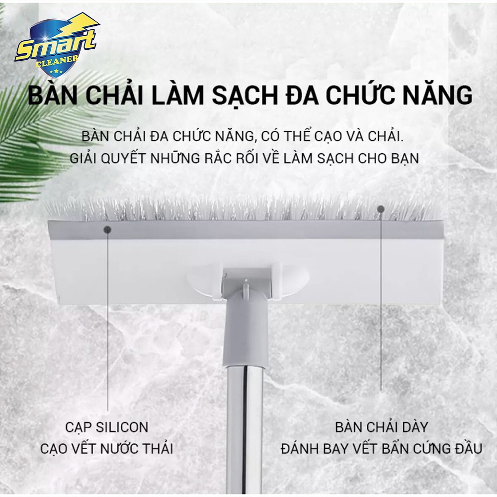 Chổi cọ sàn nhà tắm, nhà vệ sinh được thiết kế tinh tế. Cây chà sàn cực kỳ đa năng vừa chà vừa gạt nước thông minh giúp bạn vệ sinh một cách nhanh, sạch và dễ dàng- Chổi cọ nhà tắm thiết kế thông minh 2 trong 1: Có thể vừa chà cọ sàn vừa có thể gạt nước và chất bẩn, giúp sàn nhà luôn khô sạch