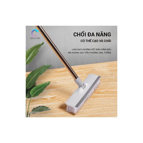 Chổi cọ nhà tắm, cây cọ sàn, gạt nước, gạt kính cán dài inox 2 trong 1 đa năng