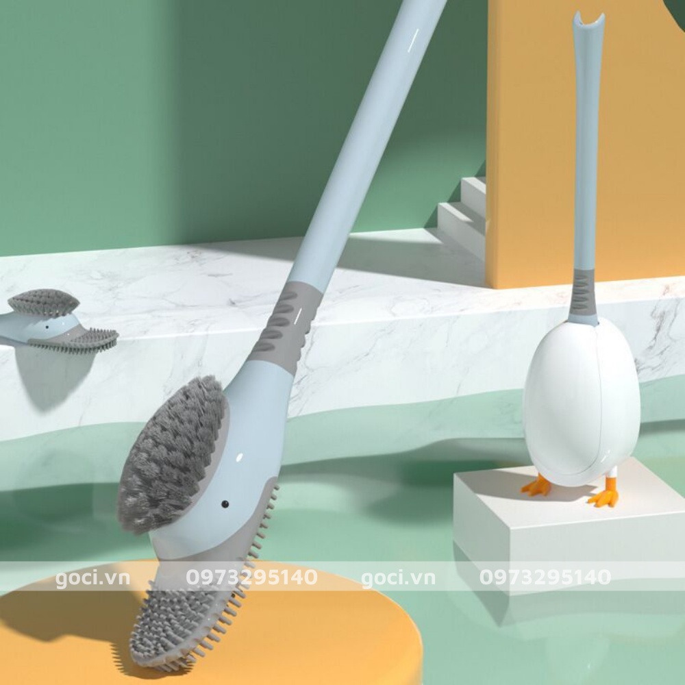 Chổi cọ nhà vệ sinh bồn cầu nhà tắm silicon gắn tường hình con vịt 2 đầu cọ thông minh tiện lợi