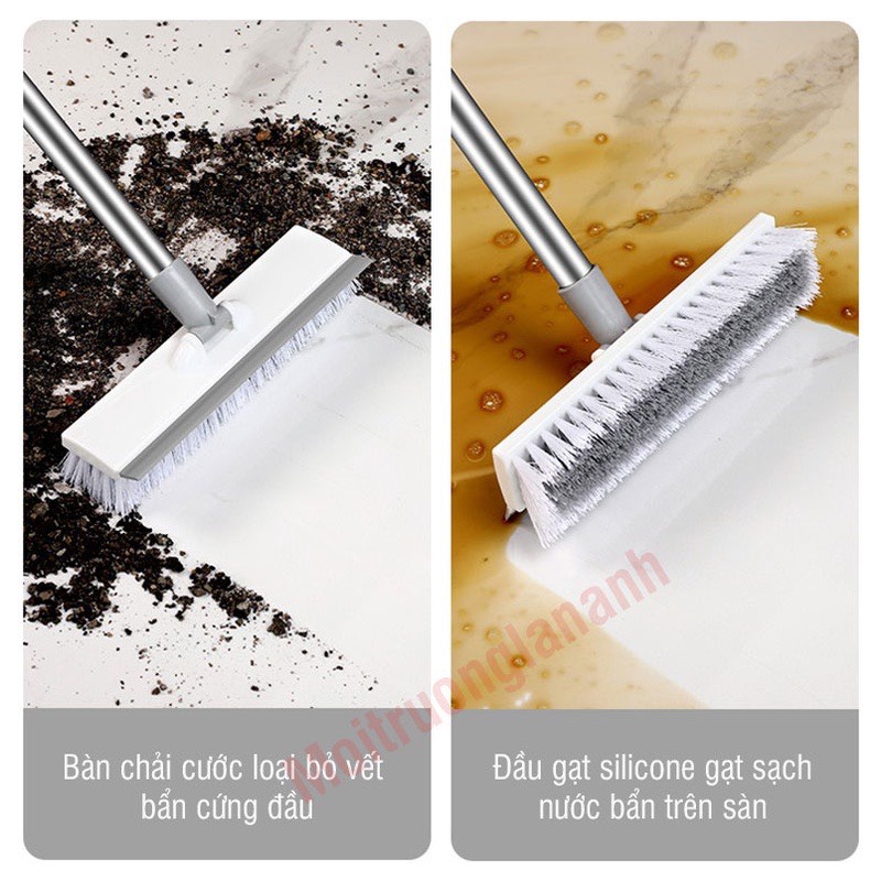 + Bàn chổi lau có 1 đầu chổi sợi cước cứng + 1 đầu gạt nước chất liệu cao su cao cấp