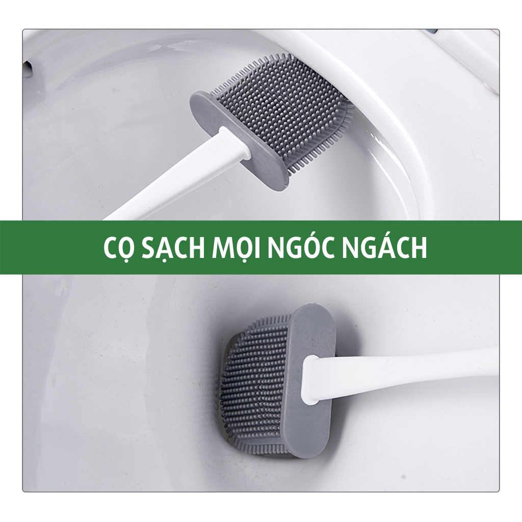 - Đầu cọ silicon dễ dàng len lỏi vô ngóc ngách chà rửa vệ sinh bồn cầu sạch sẽ