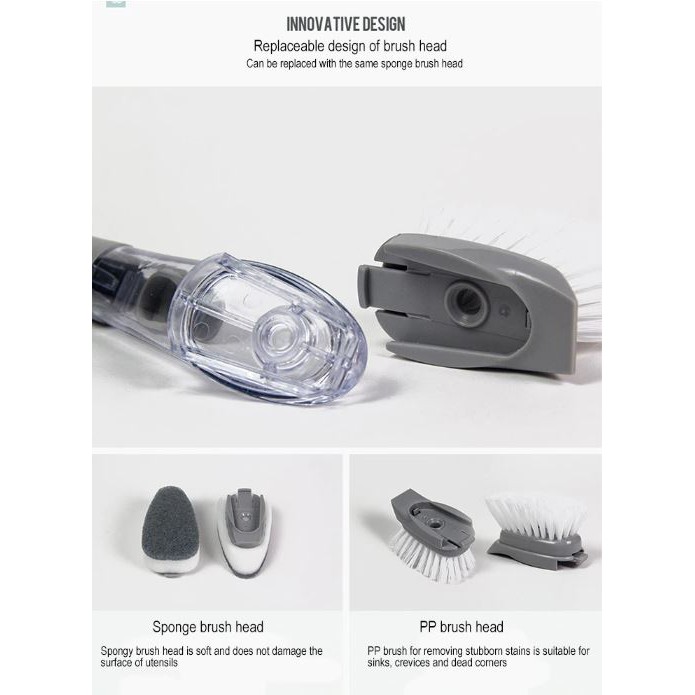 - Đi kèm là 1 đầu bàn chải và 3 đầu bọt biển giúp đáp ứng việc lau chùi trên mọi bề mặt nhà bếp, nhà tắm, giày dép...