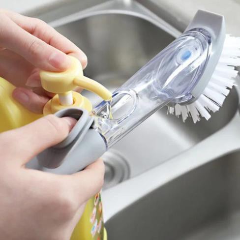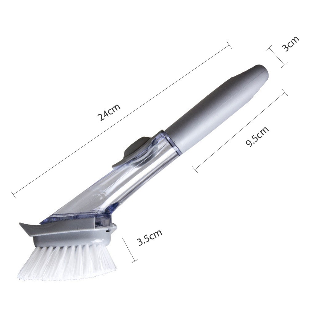 - Với cơ chế hoạt động: nước rửa chén sẽ được cho vào thân trên của dụng cụ rửa chén bát, khi rửa chén bạn có thể nhấn nút cao su sẽ có được ngay lượng nước rửa đủ để làm sạch chén, bát. Nước rửa chén sẽ thấm dần vào miếng bông mút bọt biển, rửa đến đâu ra đến đấy, rất tiết kiệm. Theo tính toán, việc sử dụng chiếc bàn chải rửa chén này sẽ giúp bạn tiết kiệm đến 70% lượng nước rửa chén so với các miếng chùi, rửa thông thường.