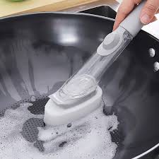 ➡ Sử dụng dễ dàng: tháo miếng cọ, đổ nước rửa vào phần chứa ở tay cầm, lắp lại & không lo hết nước rửa.