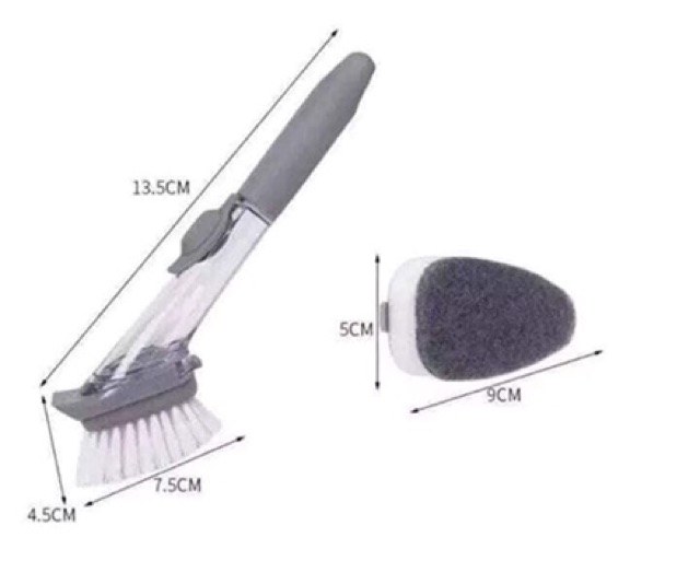 ➡ Sử dụng dễ dàng: tháo miếng cọ, đổ nước rửa vào phần chứa ở tay cầm, lắp lại & không lo hết nước rửa.