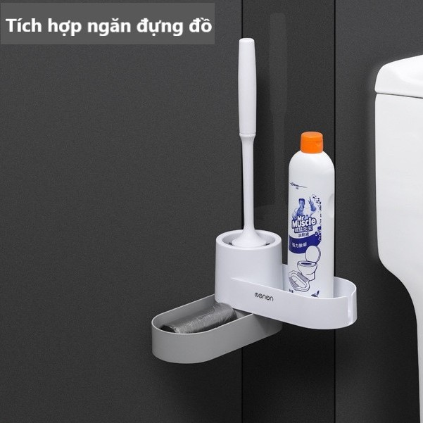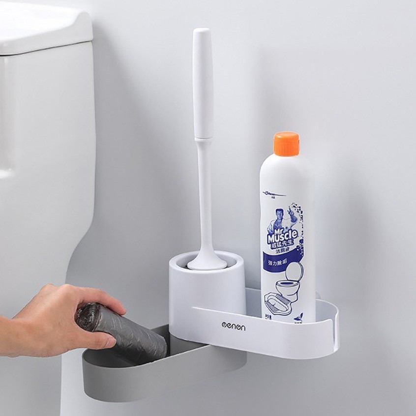 Chổi Cọ Rửa Nhà Vệ Sinh Phòng Tắm Kèm Giá Treo Dán Tường Nhựa ABS Cao Cấp Không Hoen Ố Vàng