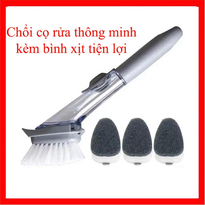 Chổi Cọ Rửa Thông Minh Kèm Bình Xịt Chứa Xà Phòng Tiện Lợi, Cọ Xoong Nồi