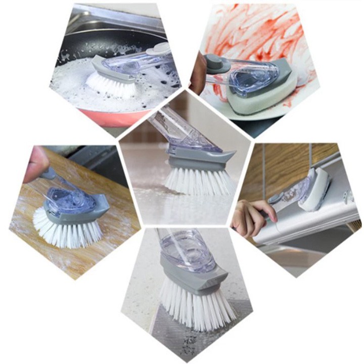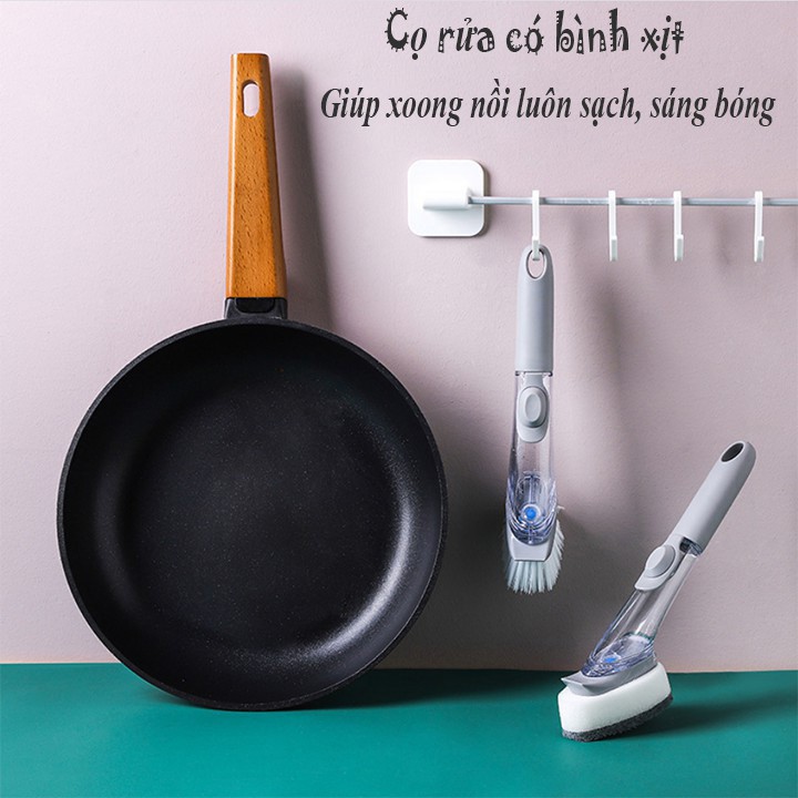 Chổi Cọ Rửa Thông Minh Kèm Bình Xịt Chứa Xà Phòng Tiện Lợi, Cọ Xoong Nồi?Bạn ngại phải tiếp xúc với hóa chất tẩy rửa