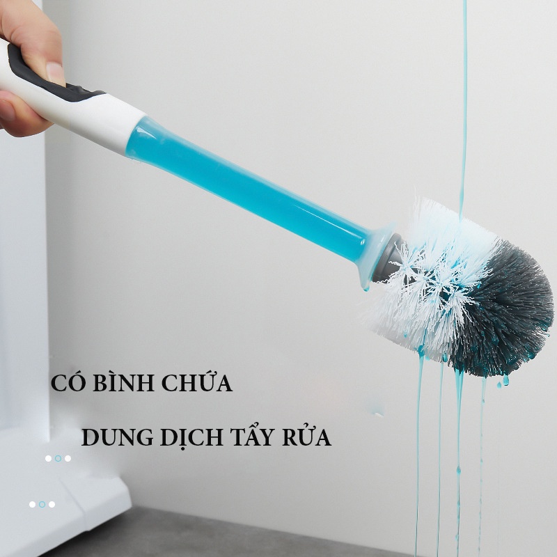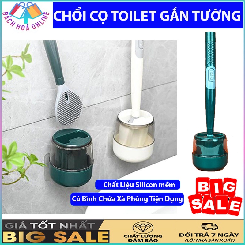 Chổi cọ toilet gắn tường - Bàn chải chà rửa nhà vệ sinh, nhà tắm - Cây cọ silicon có bình chứa xà phòng tiệng dụng