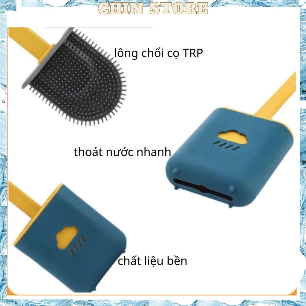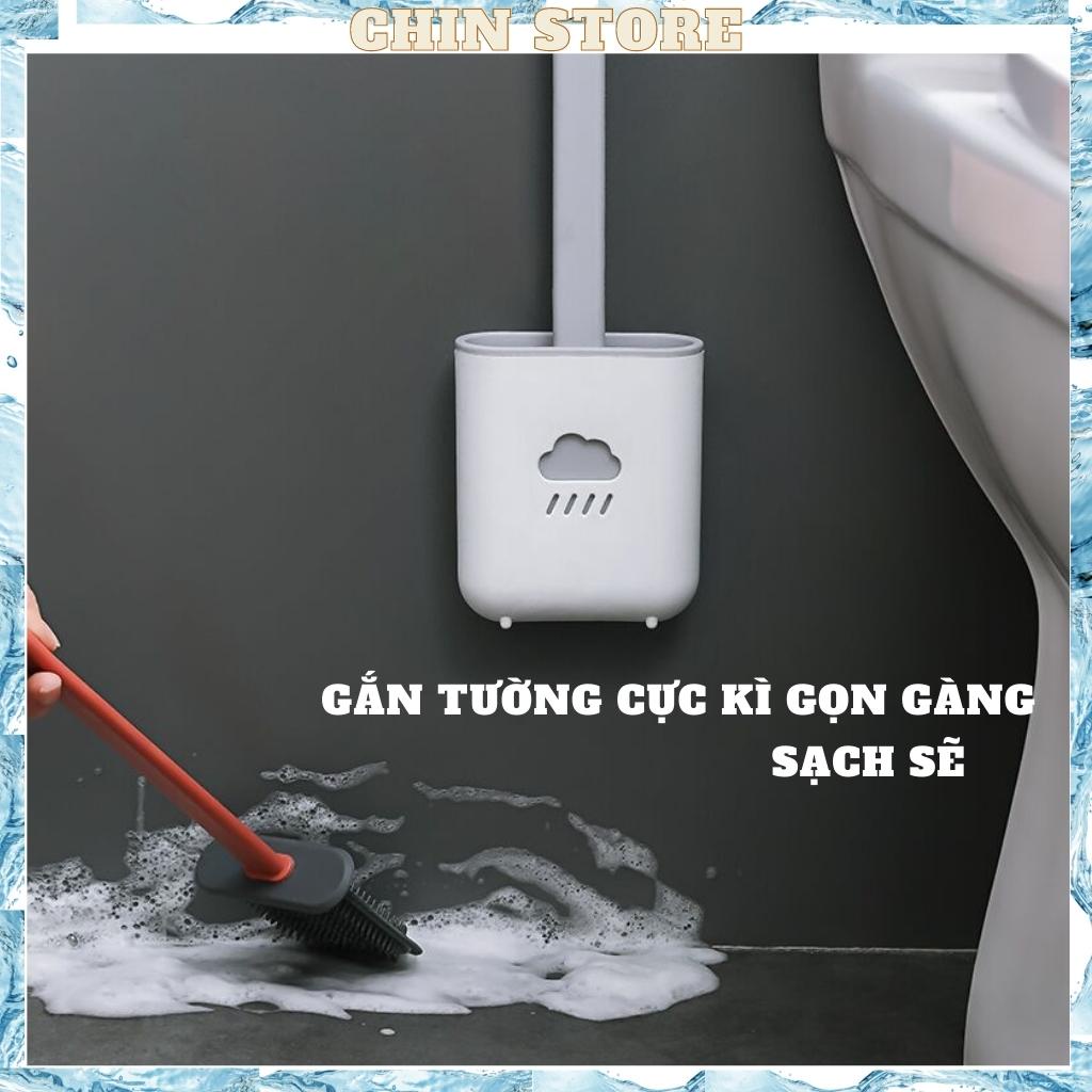 Chổi cọ toilet, nhà tắm đa năng cao cấp bằng silicon hình đám mây kèm hộp treo tường chắc chắn 38*4*10cm