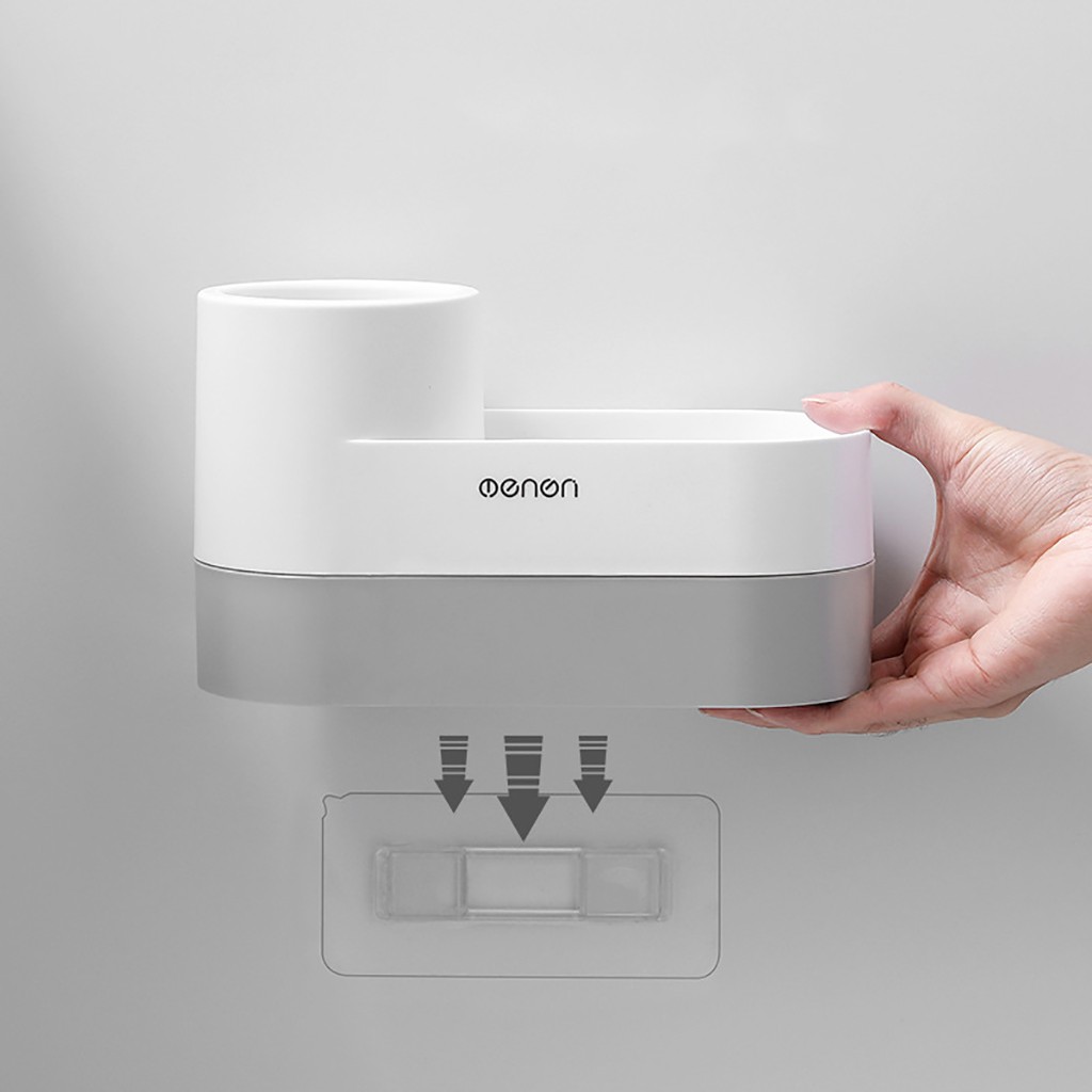 ✔ Bước 6: Gắn đế chổi cọ vào vị trí cố định và cho các vật dụng vào (Đảm bảo 12 giờ sau khi miếng dán dính vào tường).