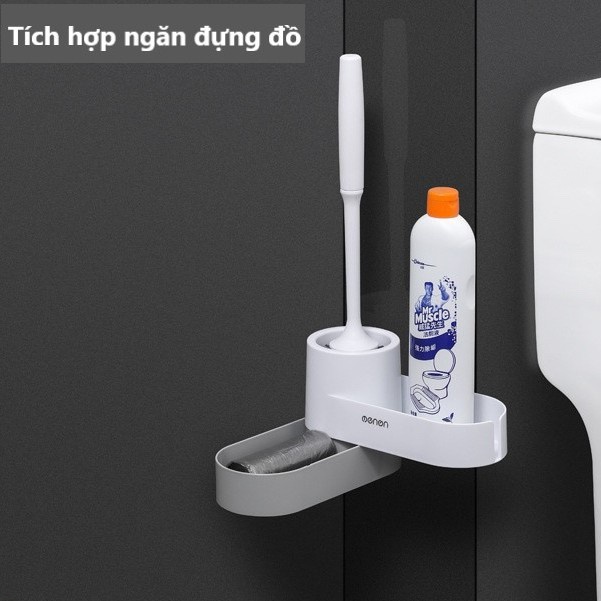 Chổi Cọ Vệ Sinh Toilet Nhà Tắm Silicon Oenon Cao Cấp Có Giá Để Đồ Dán Tường Thông Minh - Kèm Miếng Dán