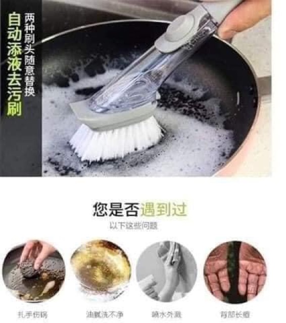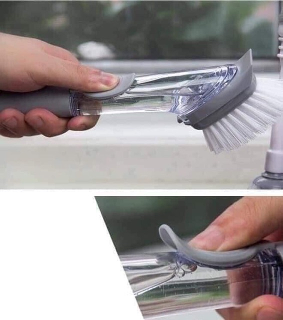 ➡ Sử dụng dễ dàng: tháo miếng cọ, đổ nước rửa vào phần chứa ở tay cầm, lắp lại & không lo hết nước rửa.