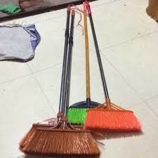 Chổi nhựa lông tương đối cứng dùng quét nước, quét sân...