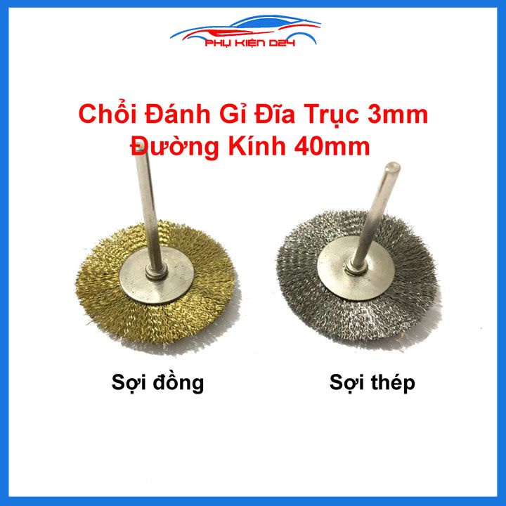 Giới thiệu Chổi đánh gỉ trục 3mm đường kính 40mm sợi thép sợi đồng