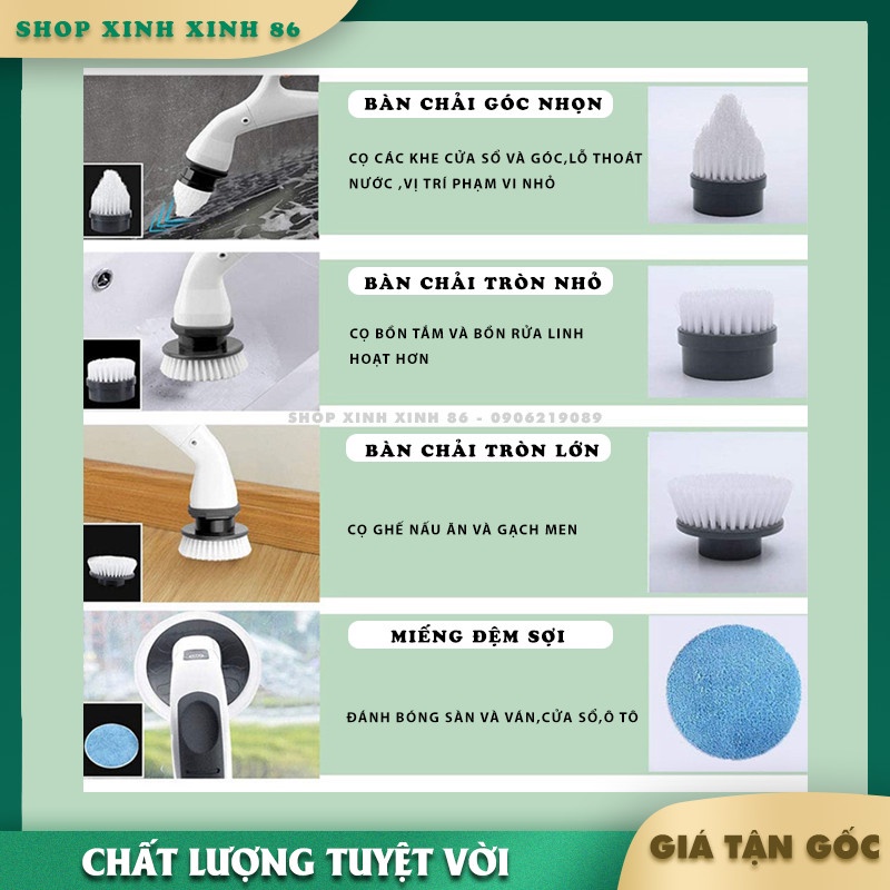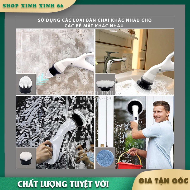 Chổi Điện Cọ Nhà Tắm Cầm Tay Không Dây Kèm 5 Đầu Cọ Thay Thế Đa Năng Thông Minh