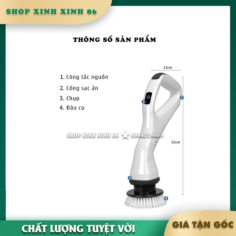 Giới thiệu Chổi Điện Cọ Nhà Tắm Cầm Tay Không Dây Kèm 5 Đầu Cọ Thay Thế Đa Năng Thông Minh