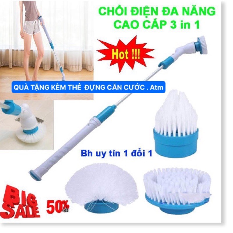 Chổi điện đa năng 3 đầu Spin 300RPM Máy Chà, rửa Vết Bẩn vệ sinh-nhà tắm Phòng bếp Thông Minh 360,Tiện lợi
