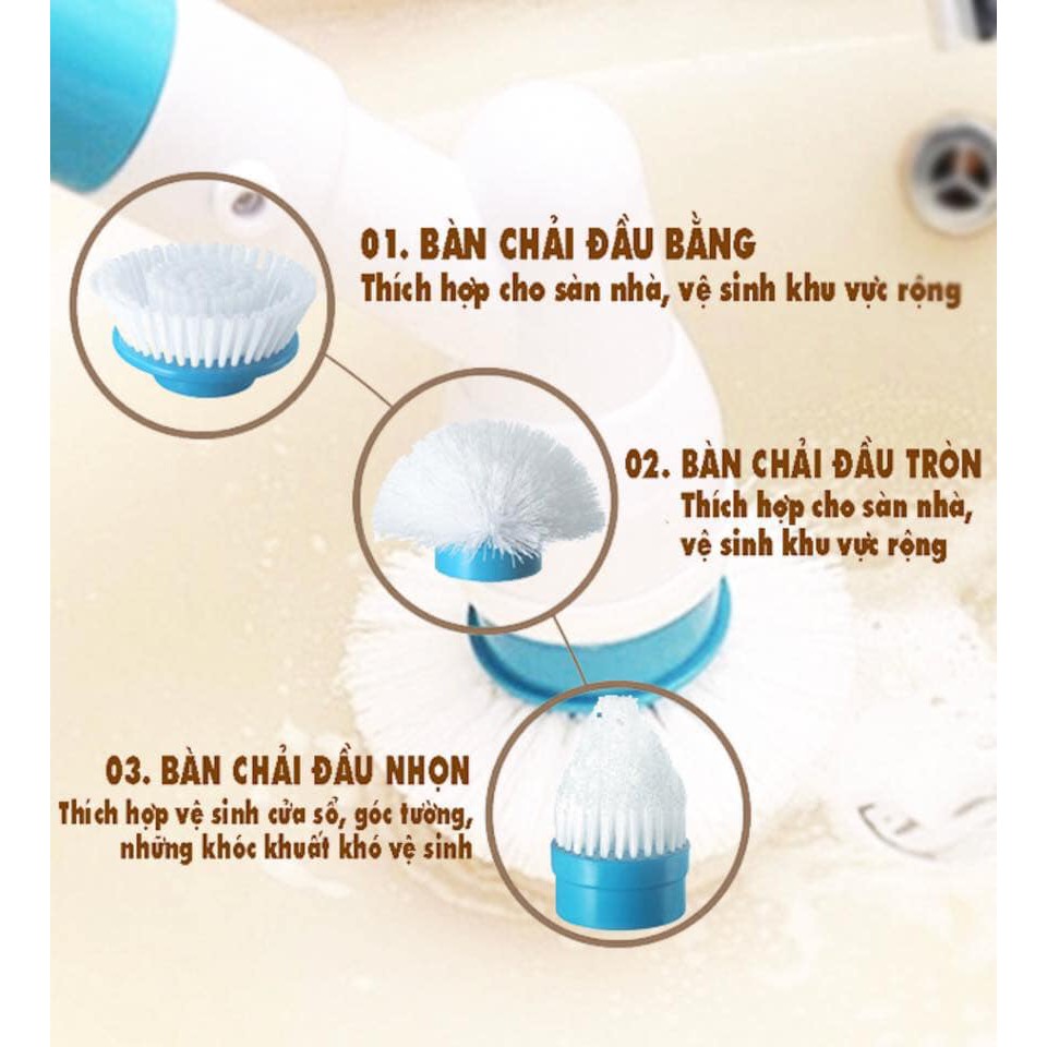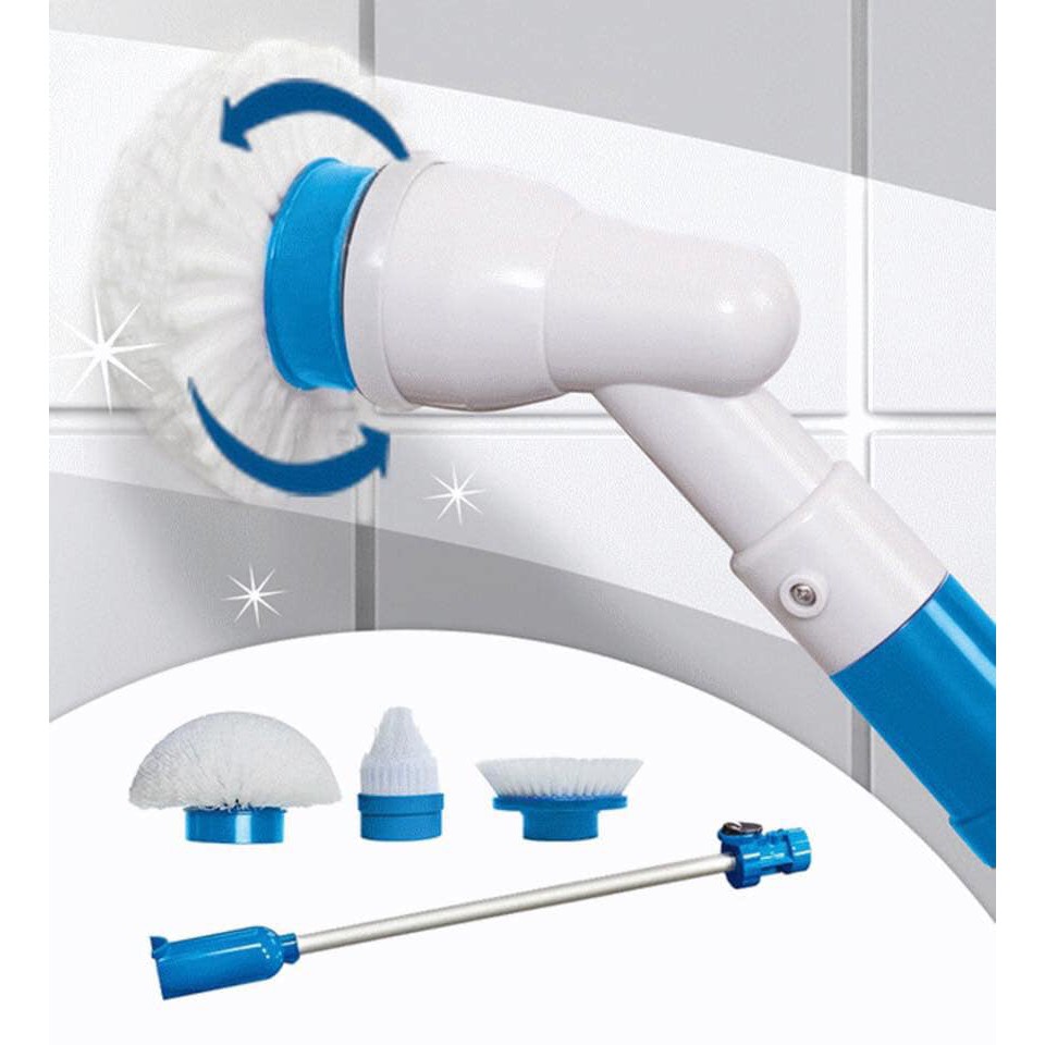 Sản phẩm được thiết kế với 3 bàn chà tiện lợi giúp bạn có thể dễ dàng sử dụng mà không mất nhiều thời gian, công sức. Với tay cầm dài có thể điều chỉnh giúp bạn có thể đưa đến mọi ngóc ngách trong phòng tắm, nhà bếp.Chỉ cần lắp đầu chà cần sử dụng, đổ xà bông và bật công tắc, chế độ xoay 360 của bàn chà sẽ đánh tan vết bẩn ở mọi ngóc ngách trong phòng tắm, phòng bếp cũng như các vết bám bẩn trên cao mà bạn không với tới.