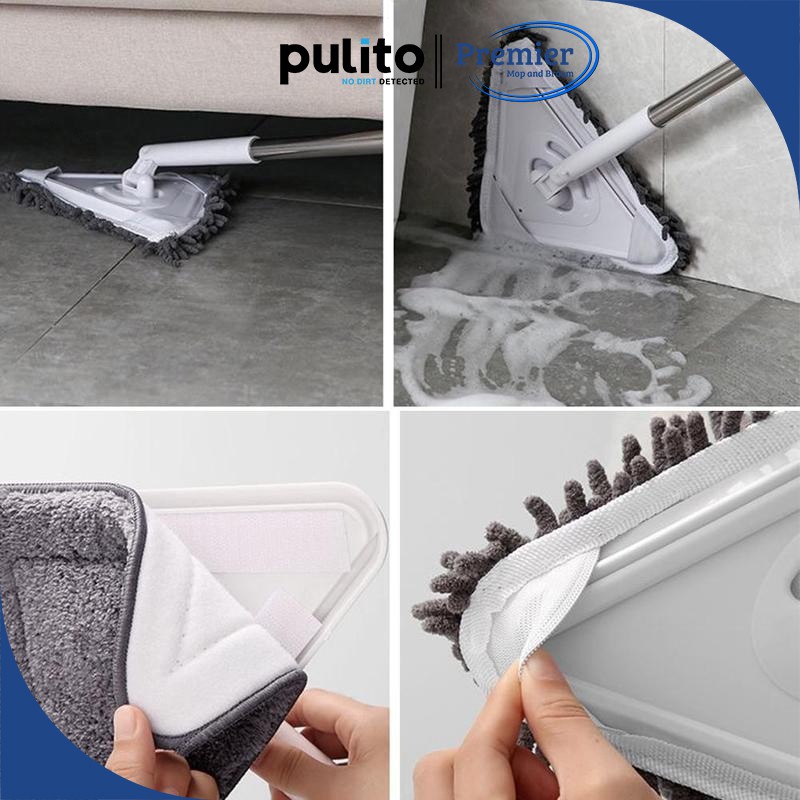 - Chổi lau nhà đa năng hình tam giác Pulito được sử dụng đa năng có thể lau cửa kính, lau tường trần nhà, lau sàn nhà, lau đồ dùng thiết bị trên cao như điều hòa, tủ treo tường…