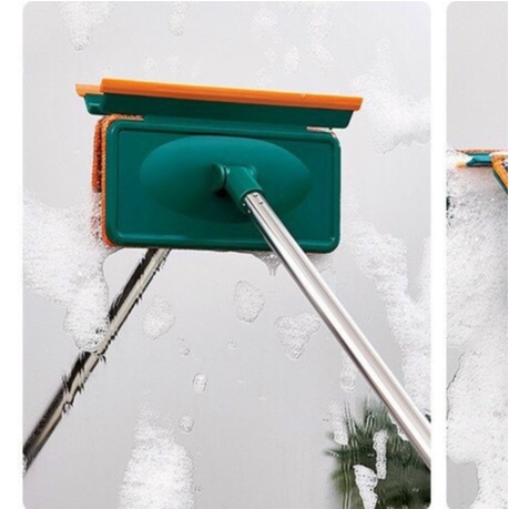 Cây lau kính, lau tường 2 đầu thế hệ mới- Sản phẩm tích hợp 2 đầu: 1 đầu gắn bông lau dạng sợi microfiber và 1 đầu gạt nước chất liệu silicon thích hợp lau, dọn, làm sạch trên các bề mặt phẳng như kính, mặt bàn ăn, điều hòa, tủ bếp, tường nhà tắm, sàn nhà,...