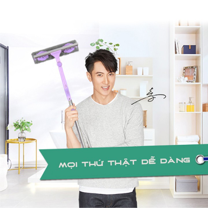 Chổi lau kính, cửa và sàn đa năng cán dài co giãn 132 cm Đầu chổi uốn xoay các góc thông minh