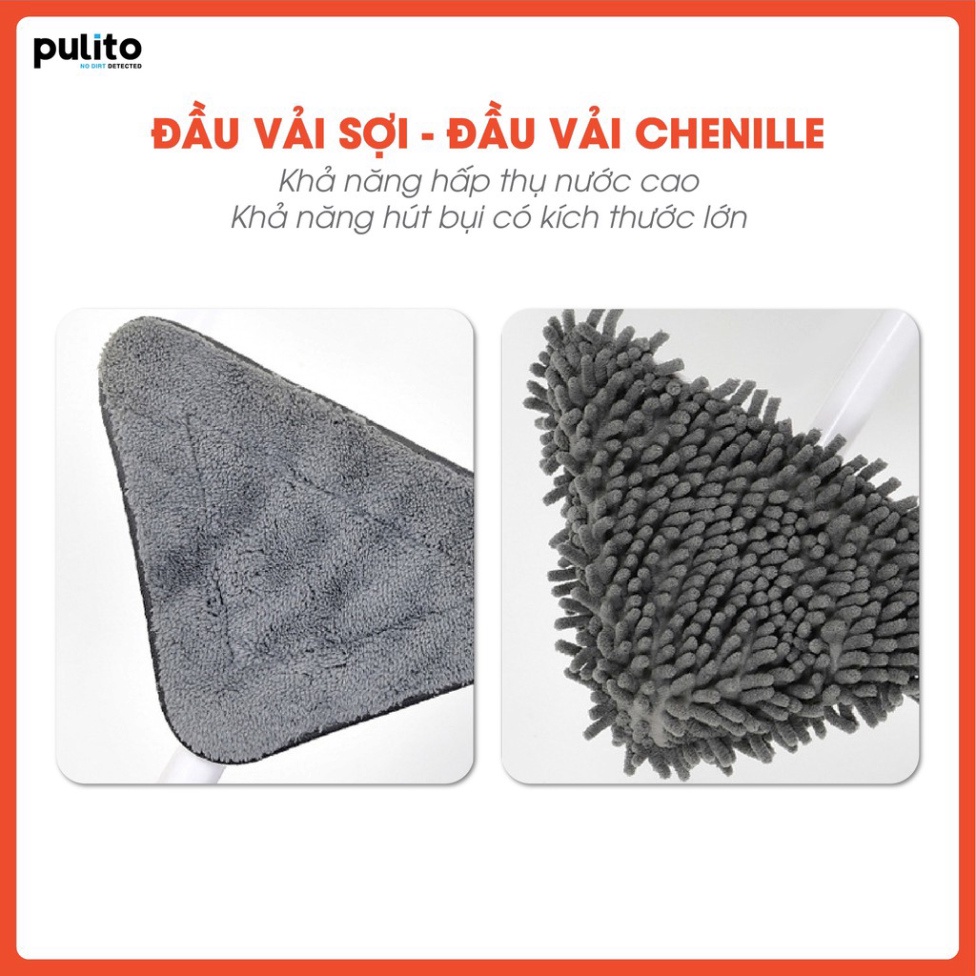 - Bông lau chổi với chức năng hút ẩm, cuốn, giữ mọi bụi bẩn tránh việc quét đẩy bụi từ nơi này sang nơi khác, bụi li ti bay trong không khí làm ảnh hưởng đến sức khỏe người lau dọn
