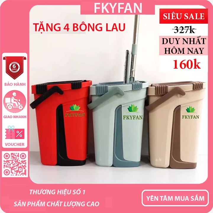 Chổi lau nhà 360 độ kèm thùng tặng thêm 4 bông lau siêu thấm,Cây lau nhà tự vắt thông minh kèm thùng vắt