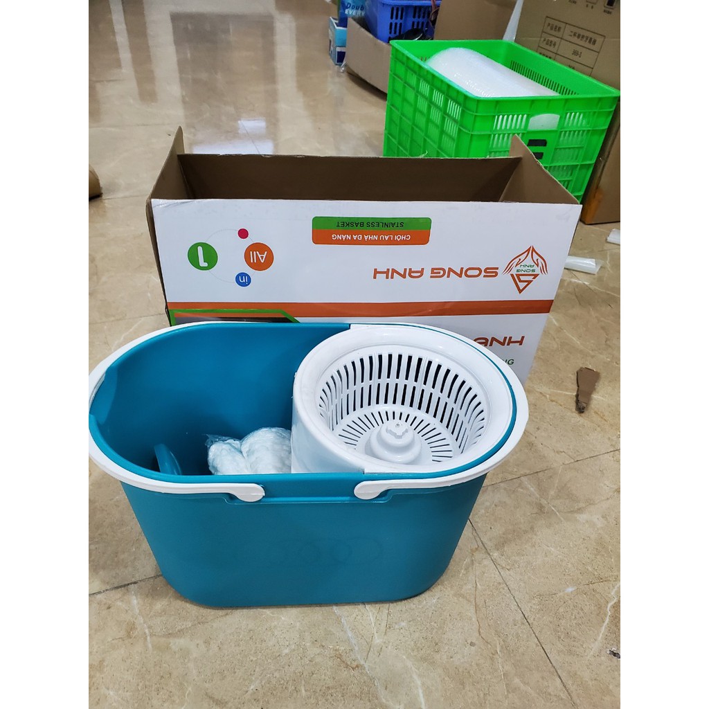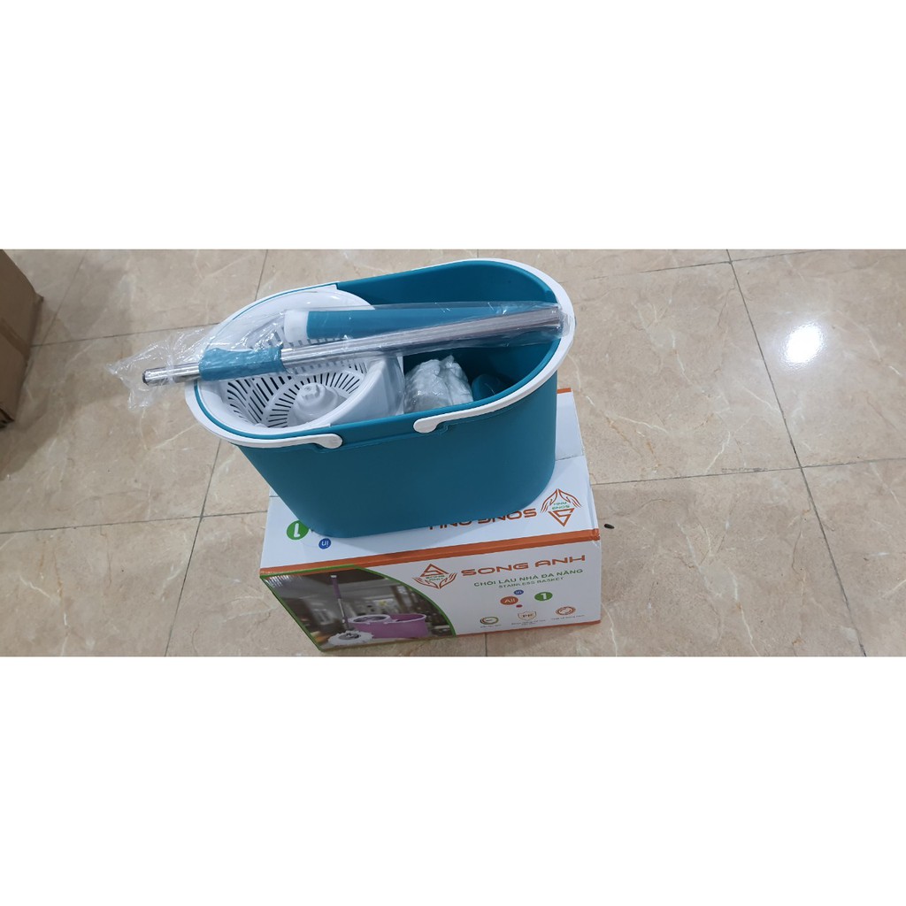 - Bộ chổi gồm: thùng nhựa nguyên khối có lồng vắt, 1 cây chổi và shop TẶNG thêm 2 bông lau ạ